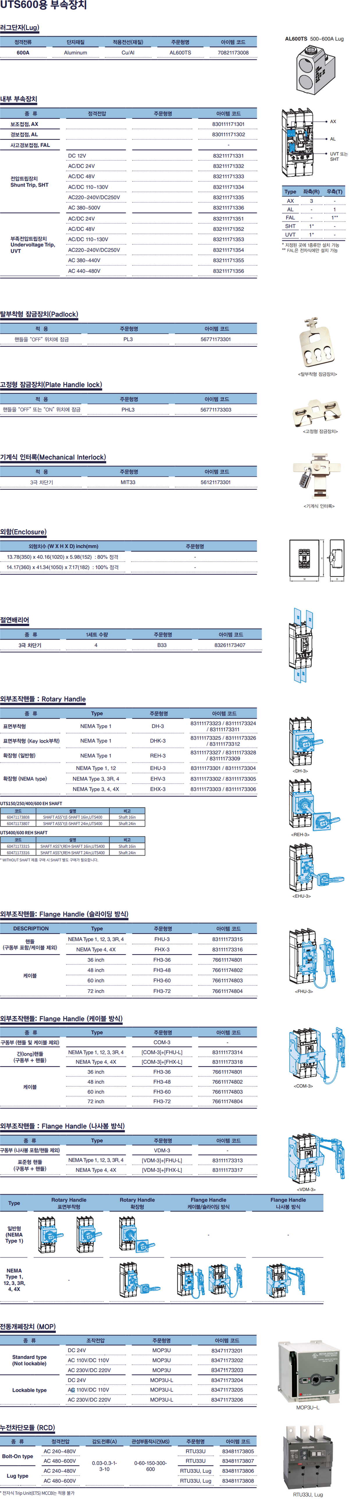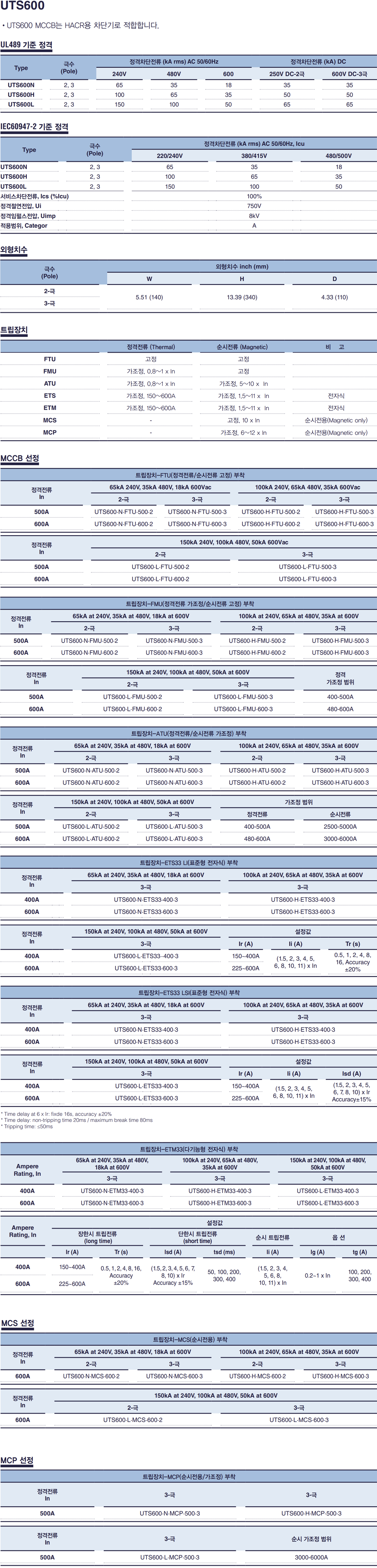 비고. UL MCCB, UTS600