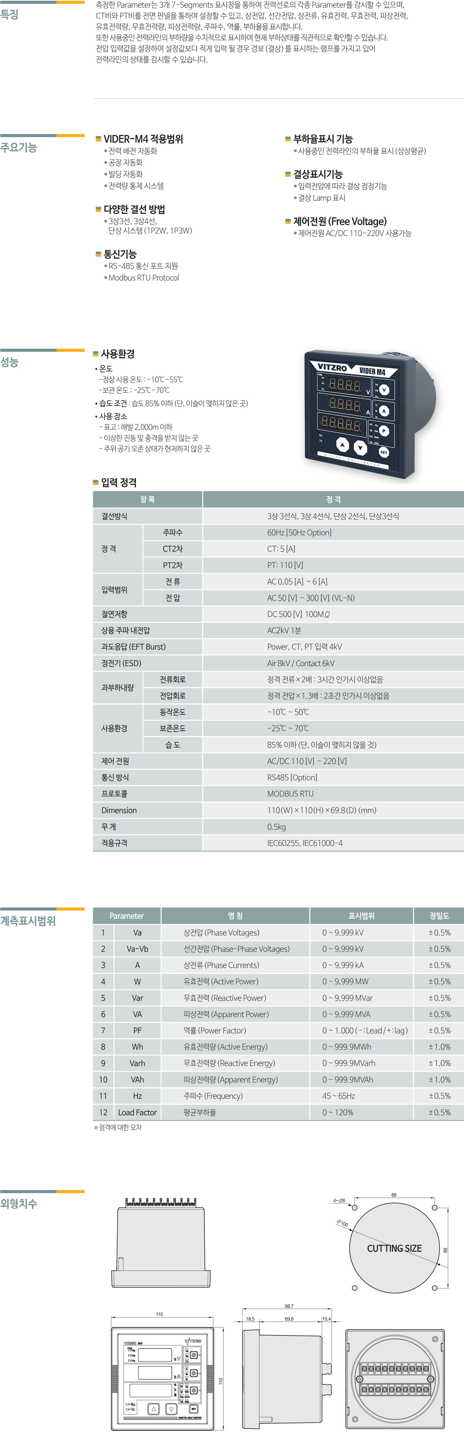 | Line Up | - VIDER-M4 RS485/Modbus - VIDER-M4 무통신 |