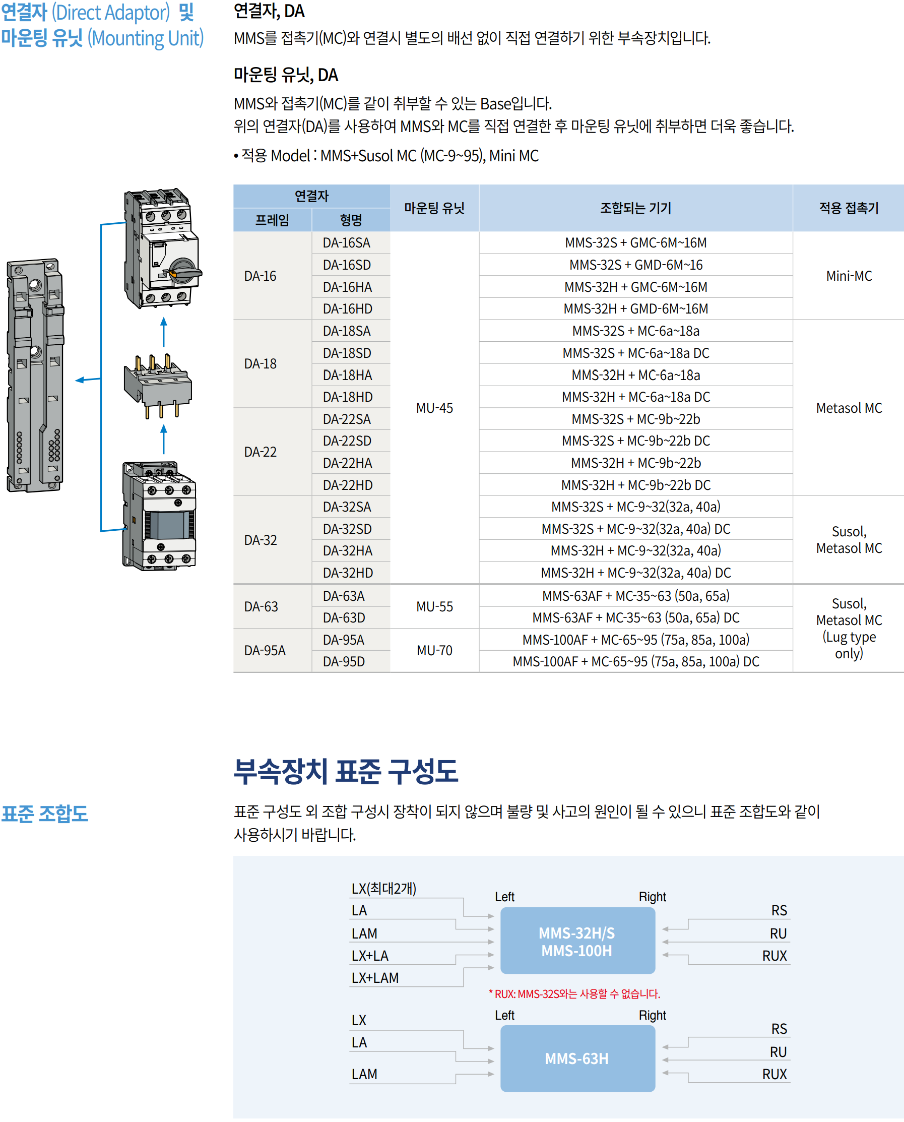 | Description | 모터보호용 차단기 연결자, 마운팅유닛 |