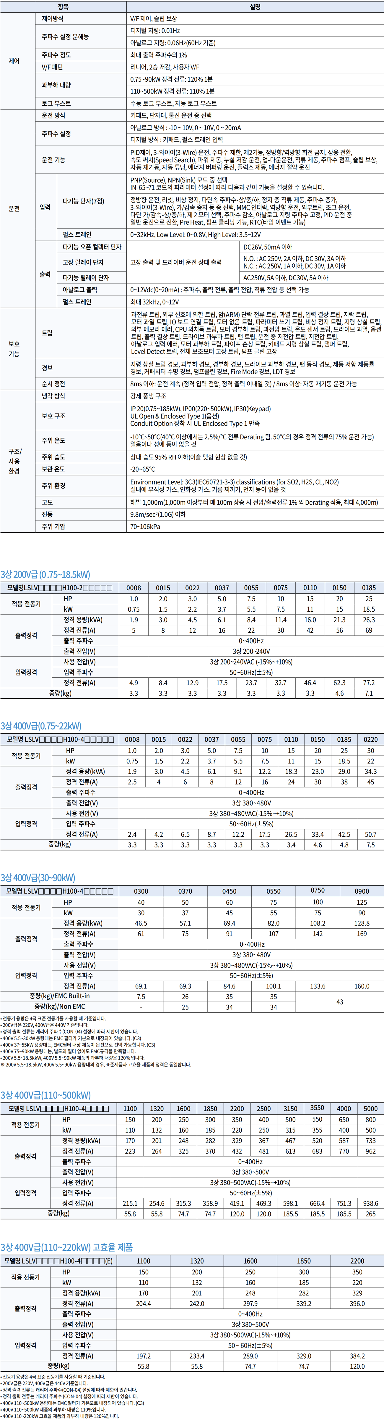 | Description | 팬, 펌프용 인버터, FAN & PUMP INV |