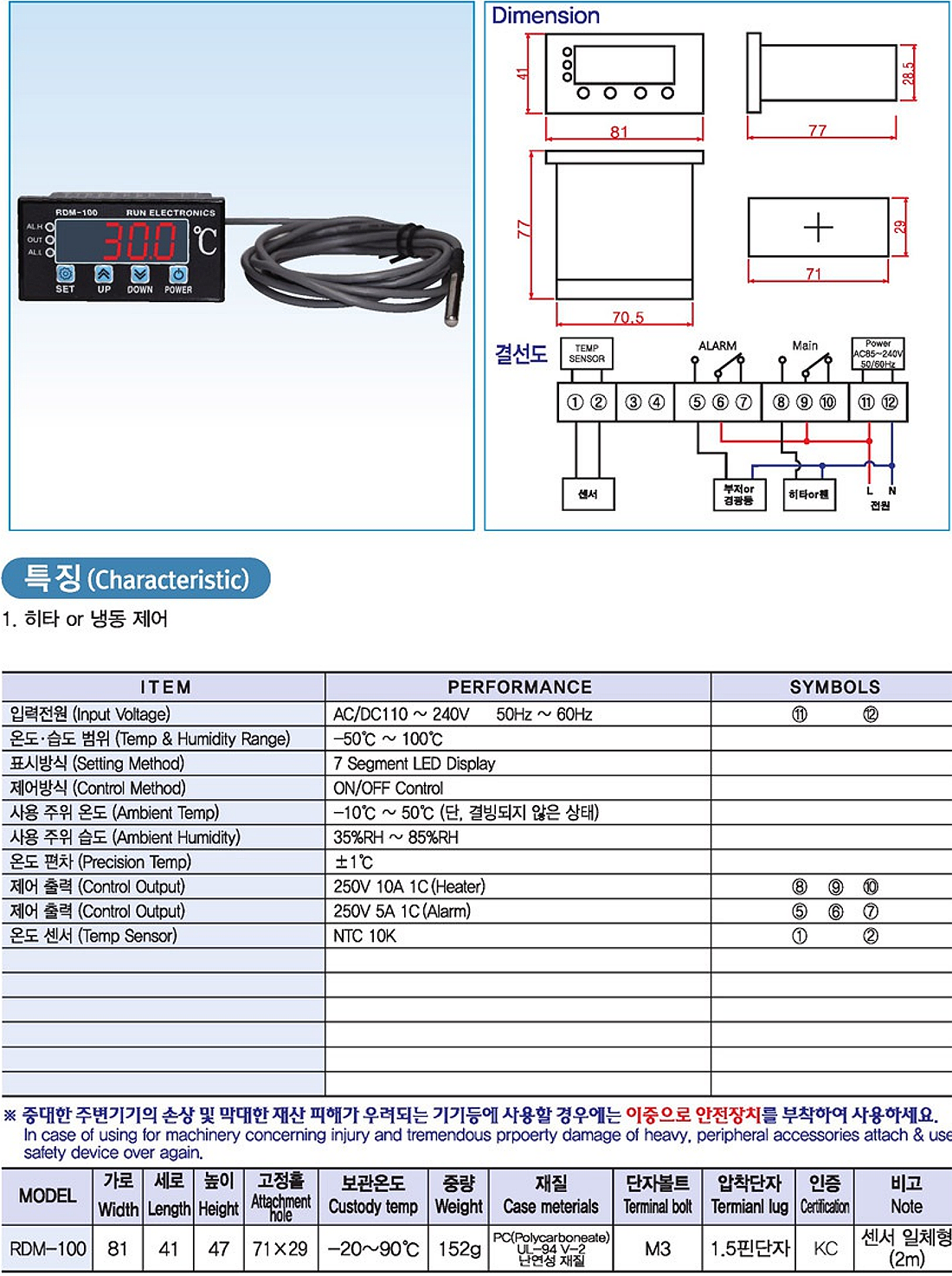 | Lineup. | RDM-100: 메인접점, 알람접점 RDM-100-2: 알람접점, 팬접점, 히터1,2접점 |