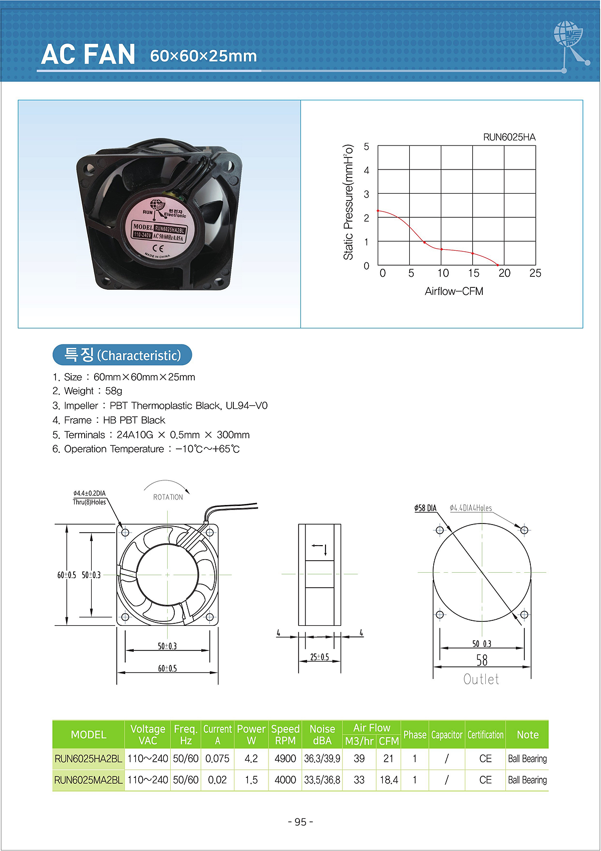 | Input Voltage | RUN6025HA2BT : AC110~240V RUN6025MA2BT : AC110~240V |