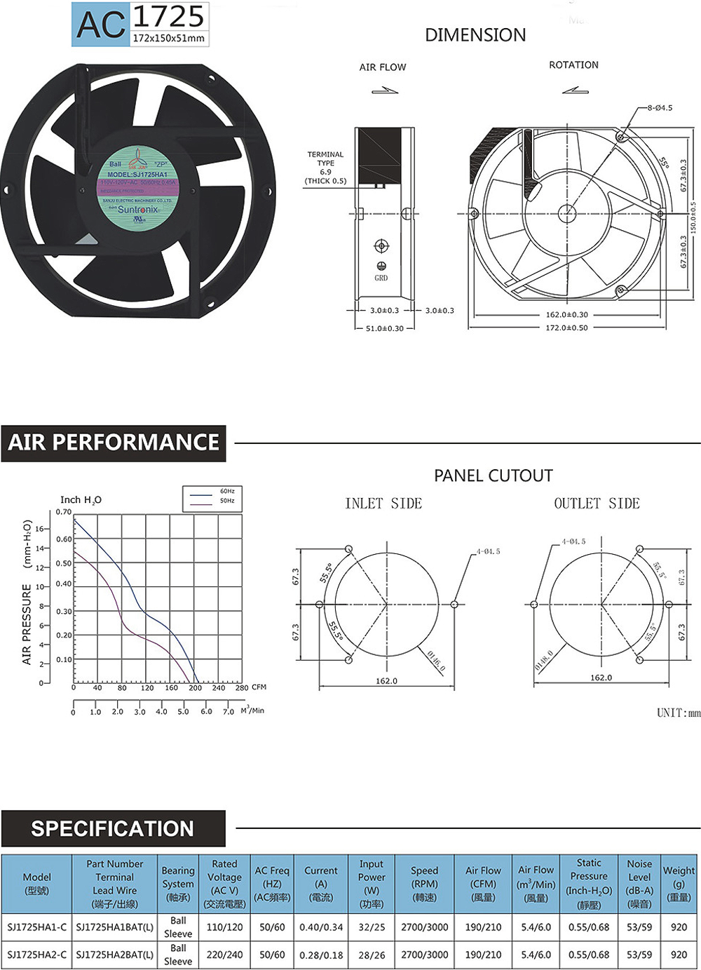 | Input Voltage | SJ1725HA2BAT : AC220~240V SJ1725HA1BAT : AC110~120V |