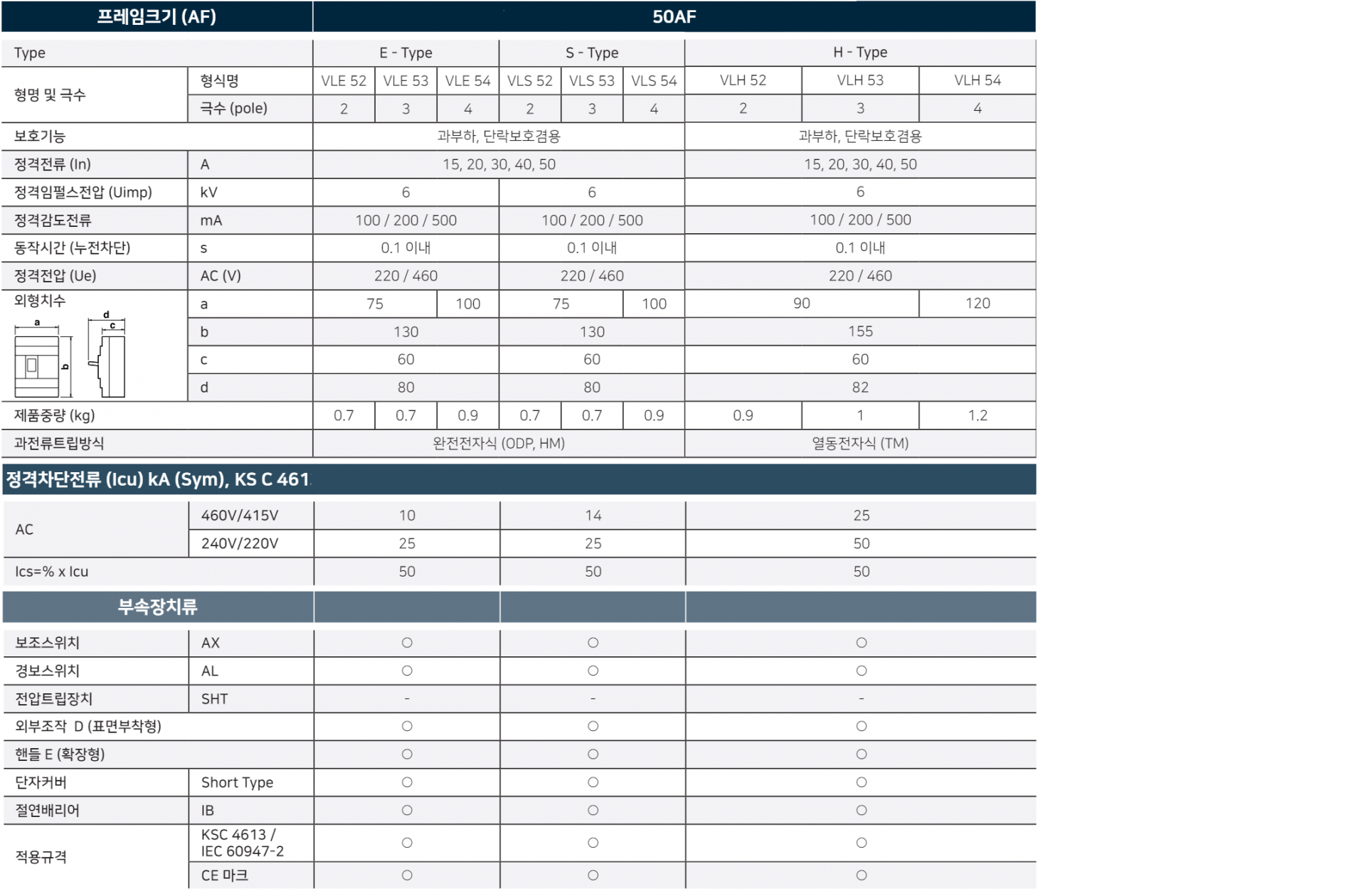 | kA | 220V : 25kA, 460V : 10kA |