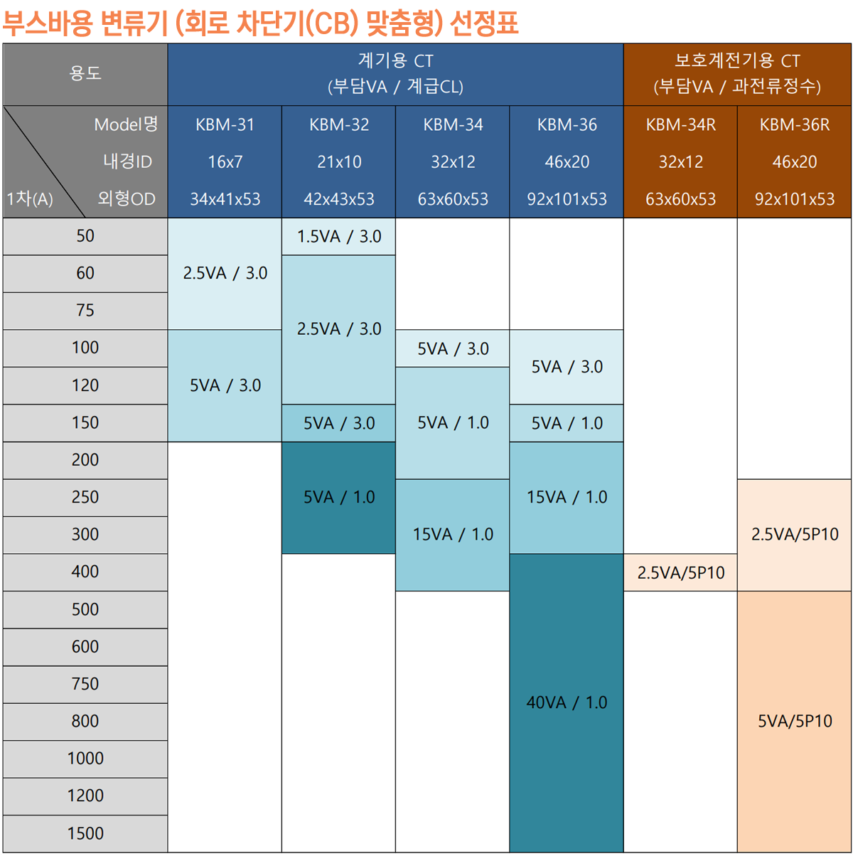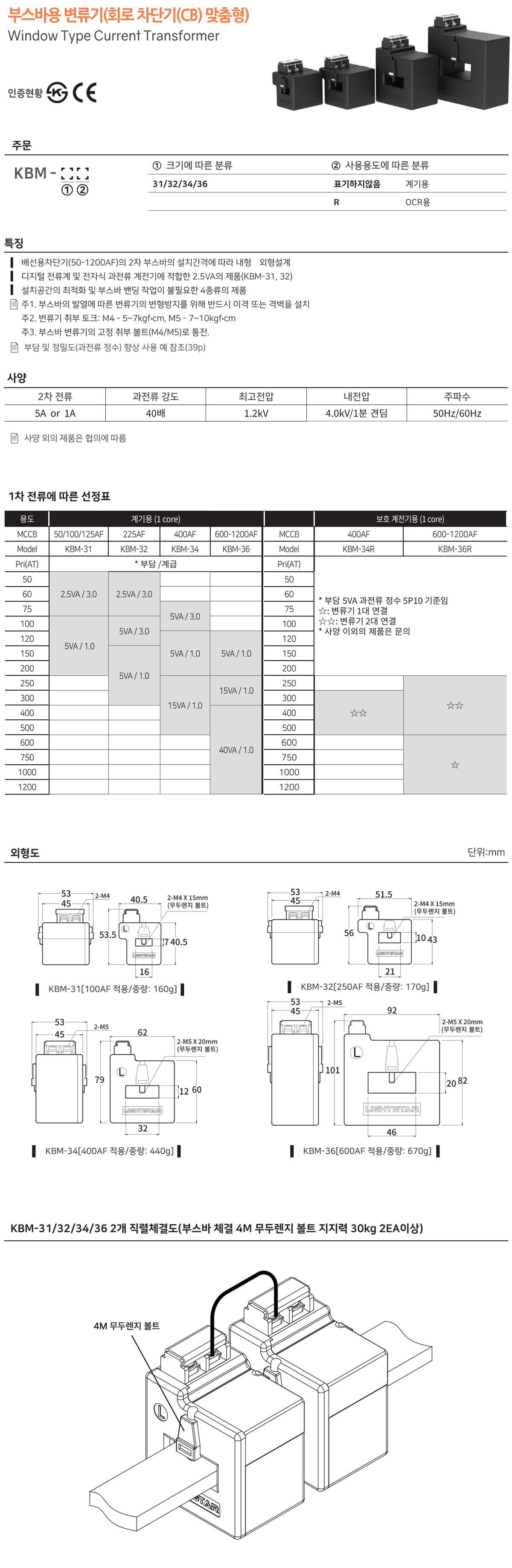 | Spec | KBM-31 50/5A [2.5vA 3.0급] KBM-31 60/5A [2.5vA 3.0급] KBM-31 75/5A [2.5vA 3.0급] KBM-31 100/5A [2.5vA 3.0급] |