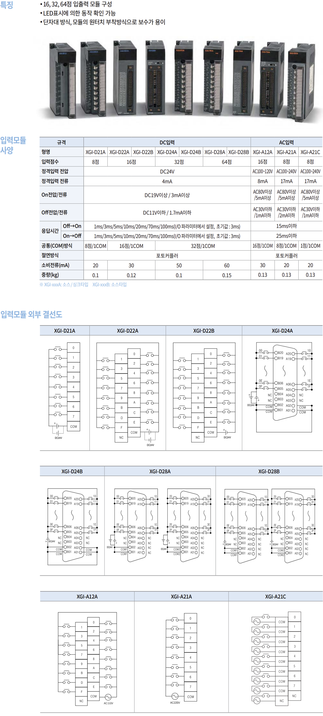 XGI-D21A, XGI D21A, XGT 입력카드, Input 8점, DC24V